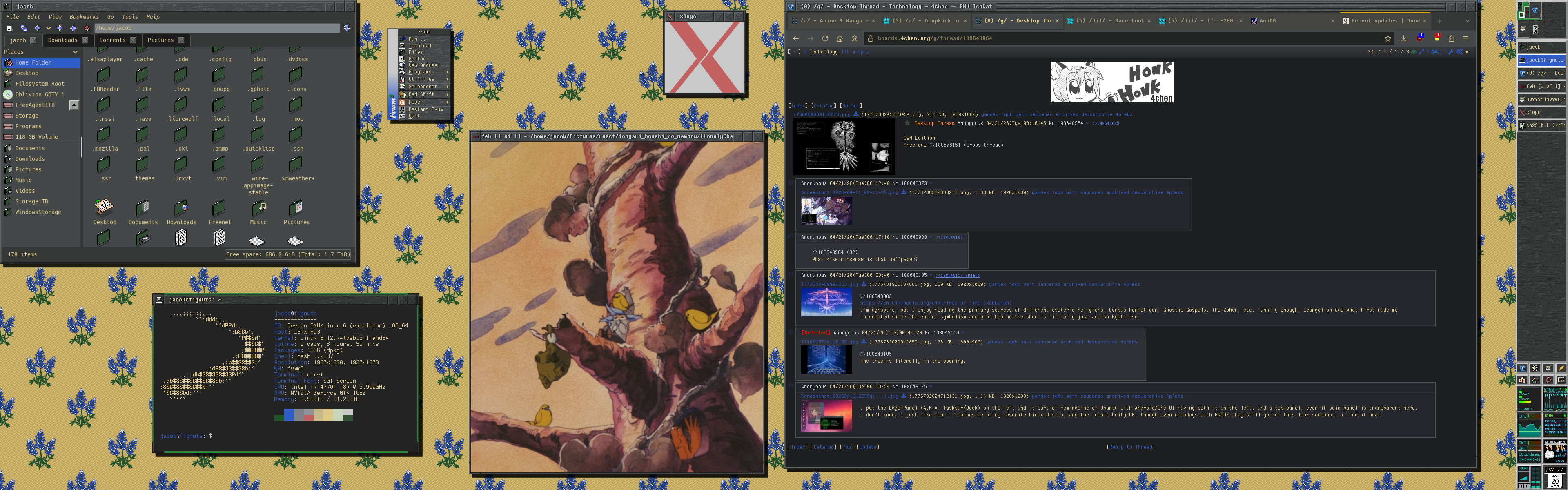 I remember seeing this in the desktop thread the other day. Looks super comfy and aesthetic, ngl. Unfortunately, the underlying OS is flaming dogshit. But seriously, how do you take Debian 13 and somehow break boot for a segment of your userbase when your only job was to revert PID1 to sysvinit?