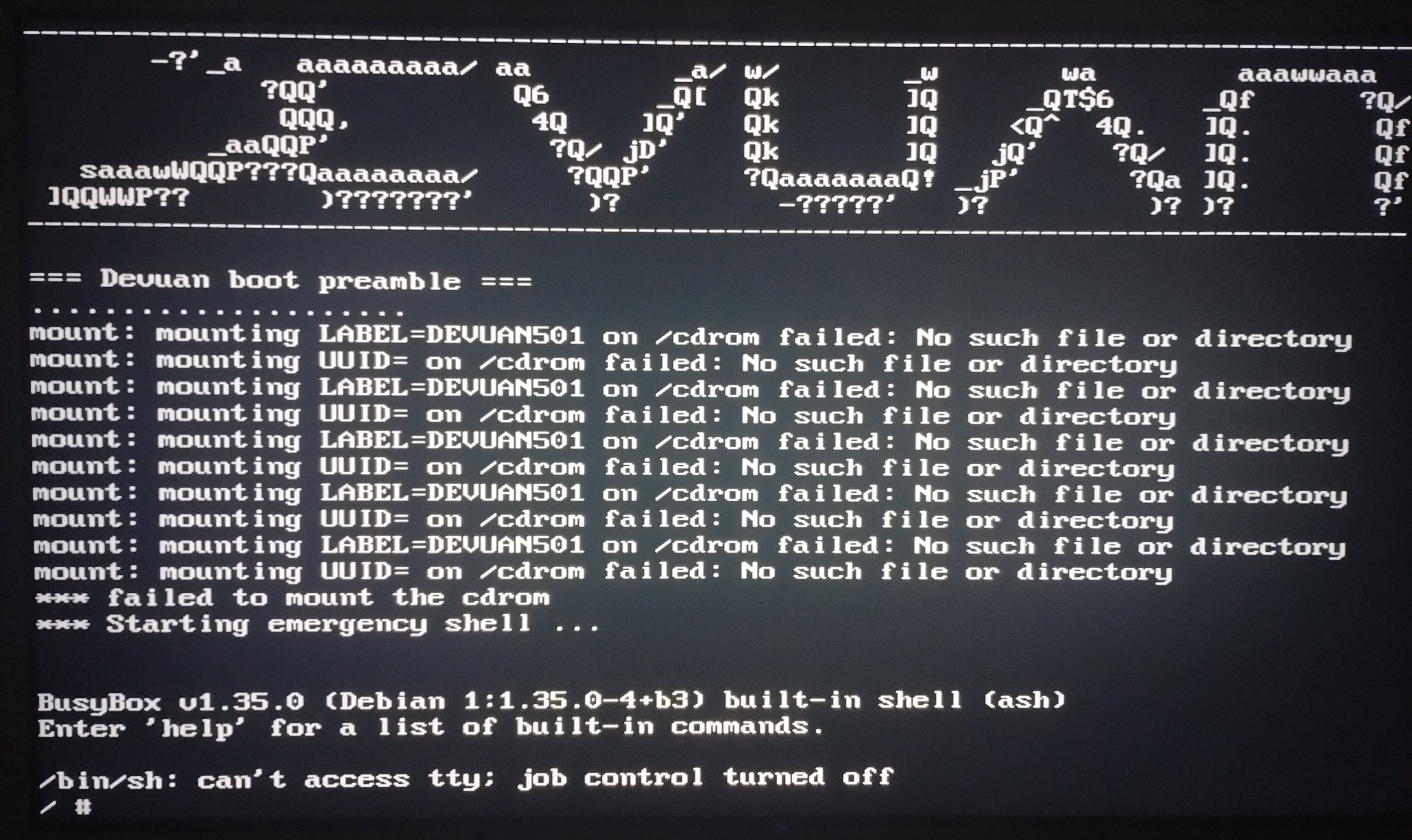The netinstaller and minimal installer were working few months ago, but for some reason the devuan maintainers broke the fucking thing and I got a similar screen to >>108700965 when I tried installing devuan on a different machine last month, the live ISO installer still works however, use that to install devuan instead. (Protip: use debootstrap from the live installer to install devuan)