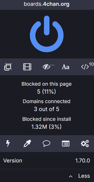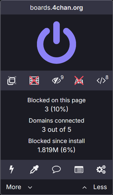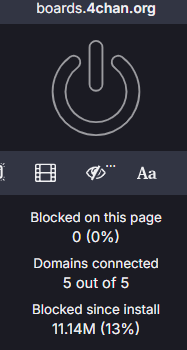>>108706653not sure, it would be nice if ublock let you see an ordered list of which sites are the worst offenders