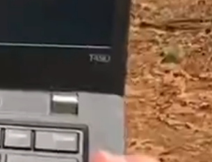 >autist holding laptop like a holy object in the middle of the woods