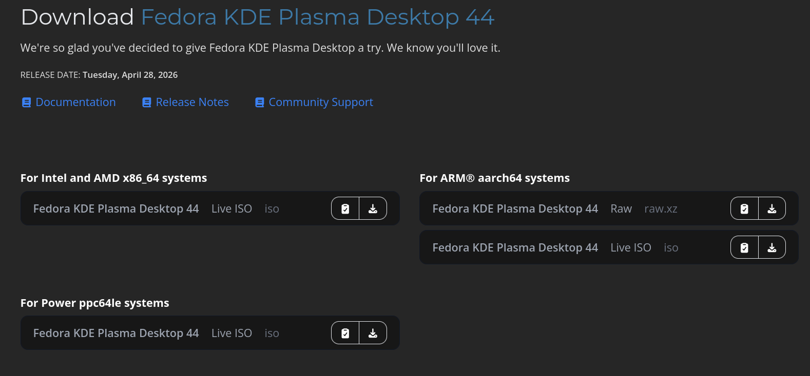 Fedora 44 where
