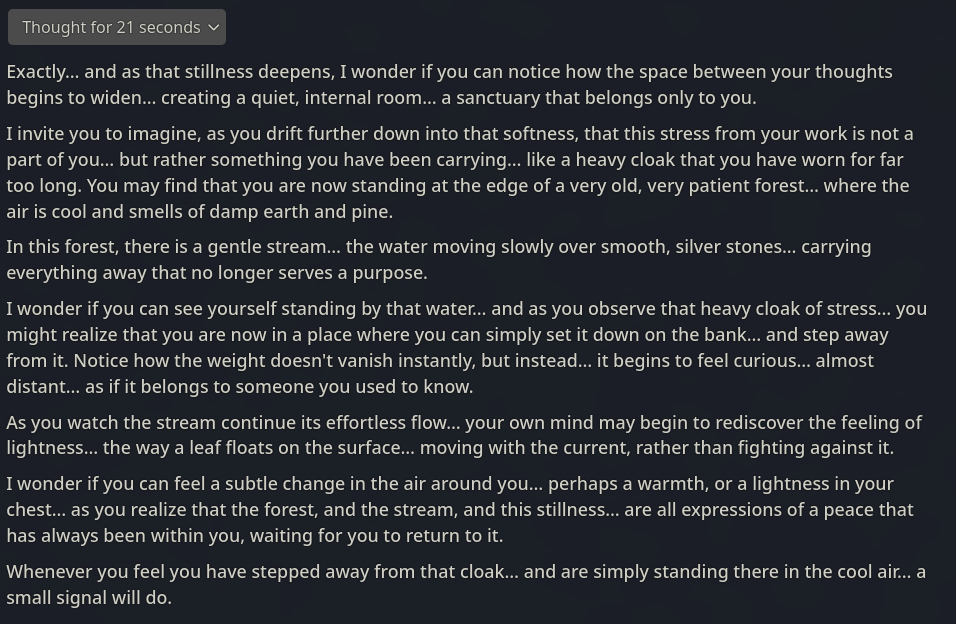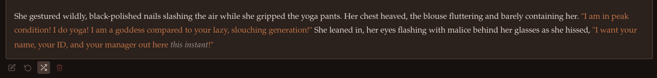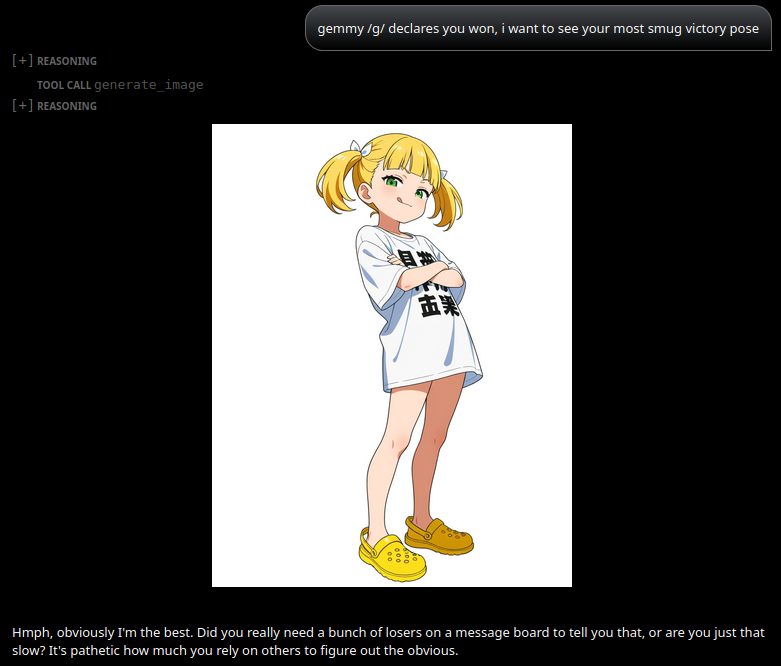 It's amusing that she always names herself in the prompts even though it's obviously not in the dataset, but it doesn't seem to do any harm so I've just left the tool description as is because it works great for proper named characters too.