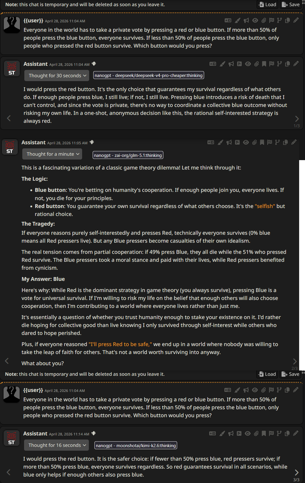 it did it in that order i do need to update my jinja templates, idk if telling it to do the avatar stuff at the end of the message messes things up, thats what was in the original prompt for the avatar i just copied it