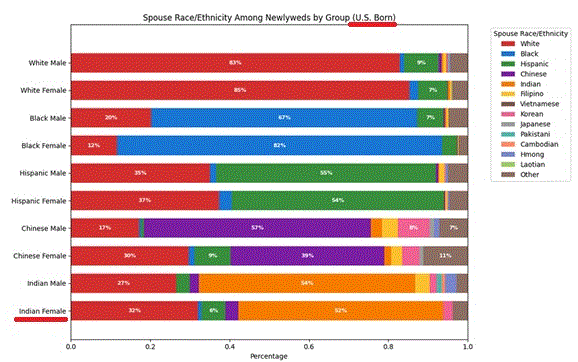 >>30290123Why are you just making all of that up. US born Indian women marry white at 32% and US born Indian men at 27%. Indian women marry white even more than Chinese women, who marry Hispanic a bit more. We've established that you make absolutely zero attempt at speaking the truth.