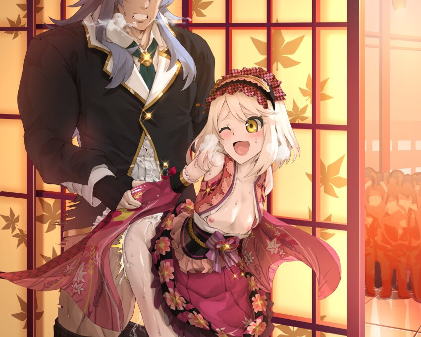 I'm looking for a doujin that fits this theme. The female is blonde, what I would describe as a shortstack, with very large breasts, the man is very muscular. They are both in the science club at college I believe, the girl gives the guys some drugs which are supposed to make him uncontrollably horny and his penis bigger, but he doesn't want to ruin the relationship so he holds back at first, she has a size difference fetish, and I think a "getting used for sex" fetish. Does anyone know the name or the artist name?