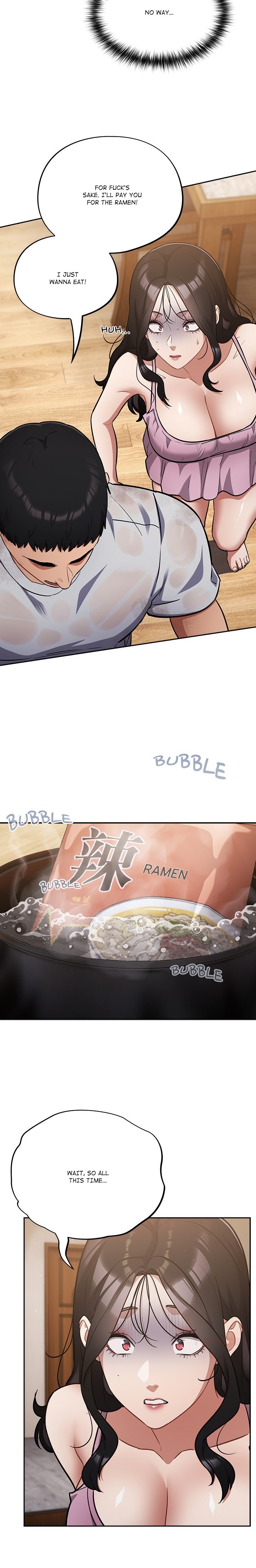 this whole fat guy arc in soeun was trash, the best thing about it were the two panels or so of them fucking after the work out and talking about why he isn't losing weight, implying that he's doing it on purpose to keep fucking her the series in general has been kinda annoying me for a while now, it hasn't really lived up to its promise...