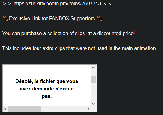 Does anyone have the full video to this animation by Tonkotu102? It’s on Fantia so I can only view the sample from where I’m from.https://fantia.jp/posts/3714905