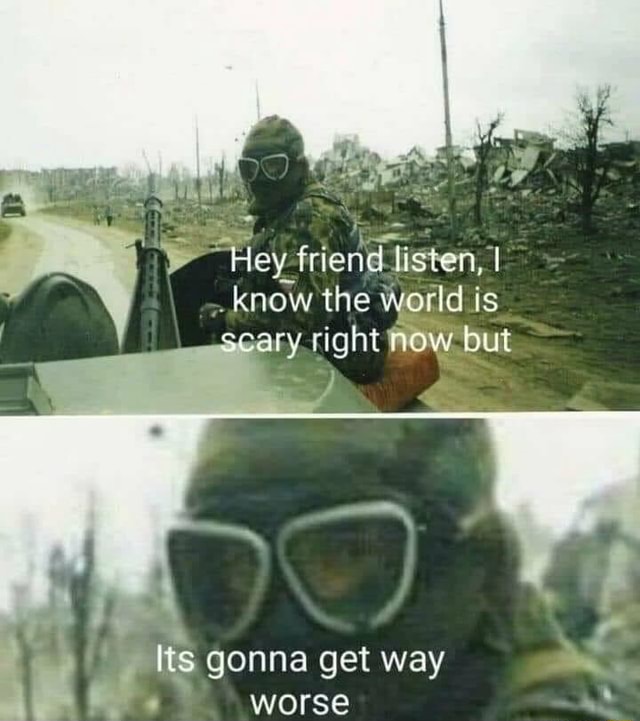 >>8756481>Live's going to shit, our governments hate us, we are being replaced and no one does anything because all are sheep, Our last bits of joy are stolen, we won't have money and they might expect us to fight Russia soonLiterally the exact same situation over here in America, homie.