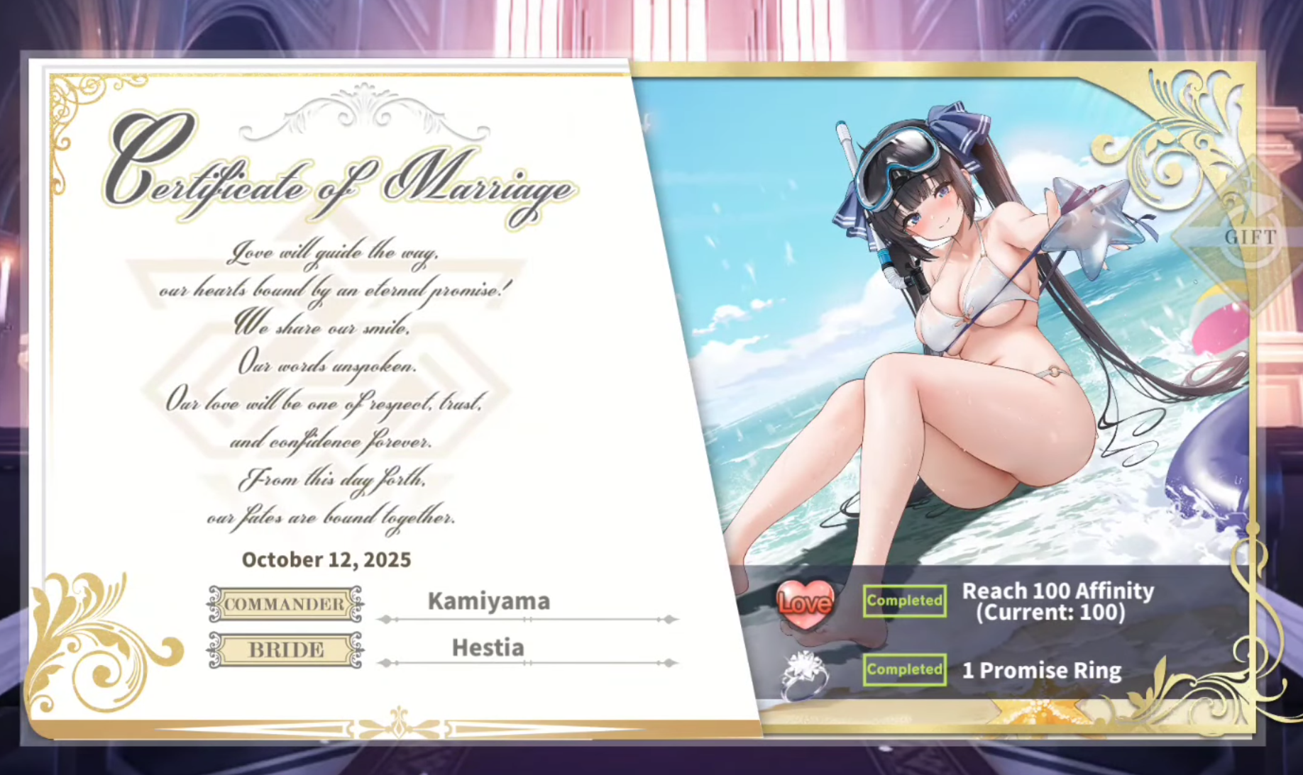 I see people bring up "casual NTR" sometimes and thought I'd share how this gacha Azur Lane has collabs with other series and you as the player can "oath" (marry) the girls. I did a little googling to see if this bothers the fans of a few series that this happened to and surprisingly I saw basically no push back over their girls being whored out to a shitty gacha game.Even to-love-ru had a collab and while you couldn't oath those girls you could still hangout with them in their rooms in their pajamas/underwear, which is literally one step down from straight up dating them.