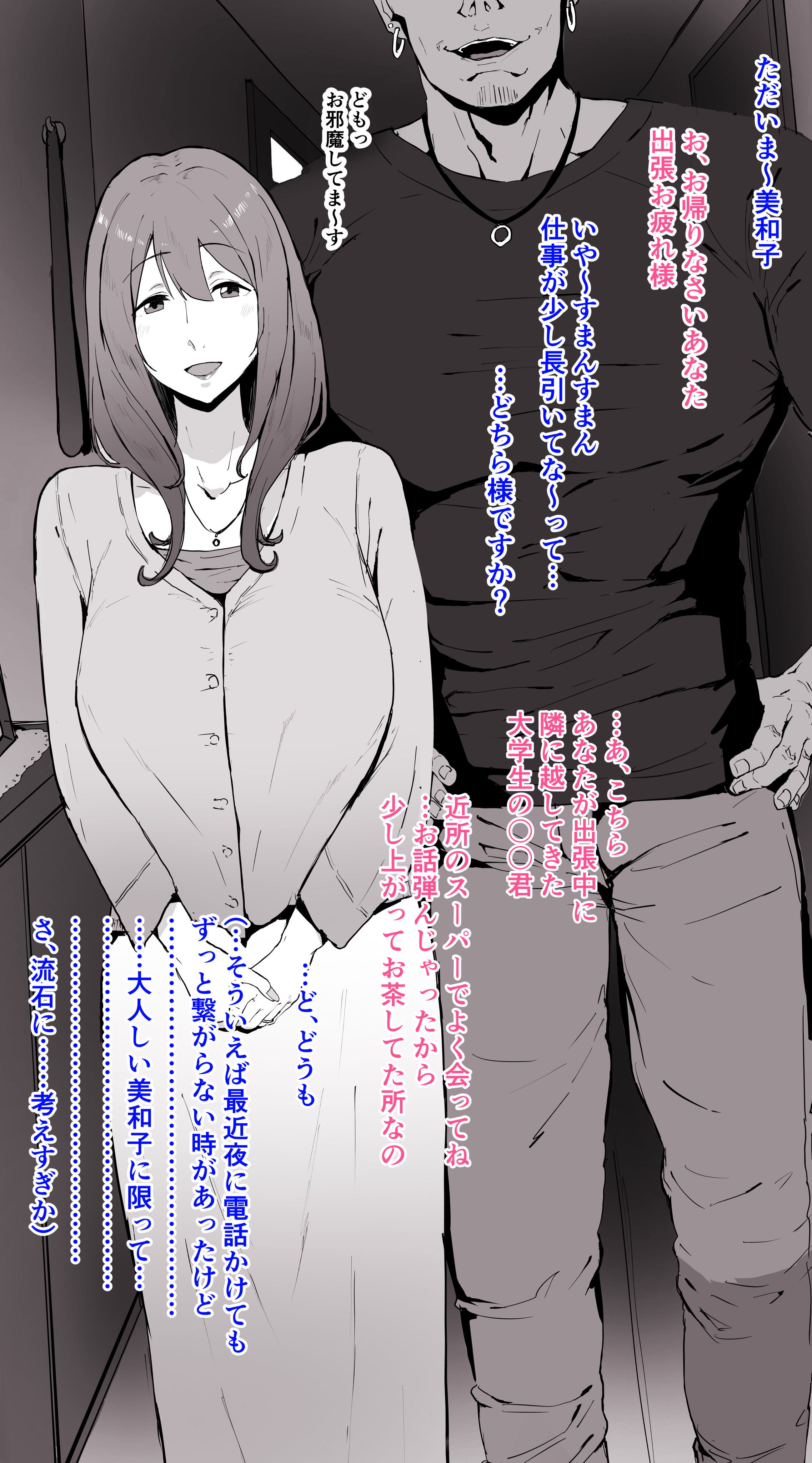 Extend a helping hand to those in trouble.A couple struggling with infertility caused by the husband.They decide to get the husband’s nephew to cooperate……to have him sleep with the wife.The wife, experiencing a man other than her husband for the first time…===================================Aside from the husband being steeped in a sense of defeat as a man, everyone is mostly happy.Or the husband might awaken to the idea of being cuckolded. If so, he would even thank them.A world filled with kindness, where people help those in need, is ideal.