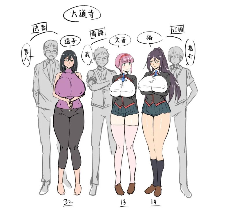 Girlfriend of daughter’s boyfriend“I really like scenarios where a mother-type character gives birth to more children than her own daughter, or has kids who are even younger than her grandchildren. I want her to harbor a childish sense of rivalry toward her daughter and think things like, ‘Since I’ve had more children than she has, that means I’m the one who’s loved more.’”
