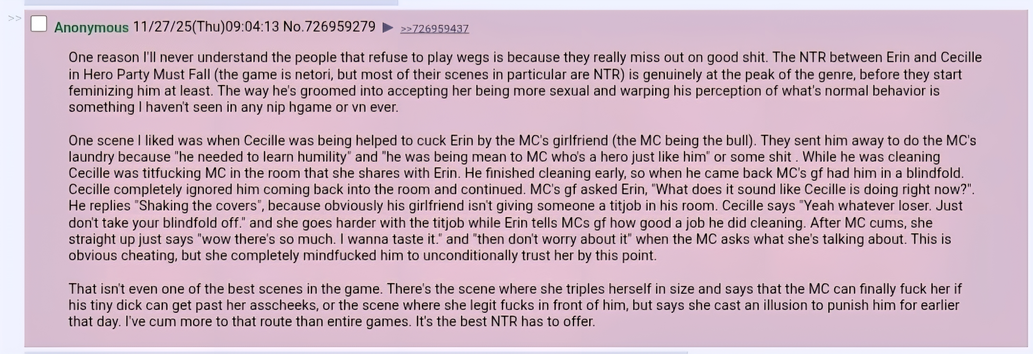 who even reads ntr doujins when games are clearly the superior medium for ntr