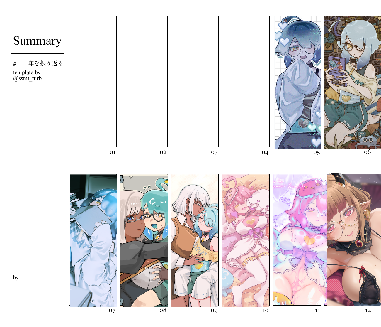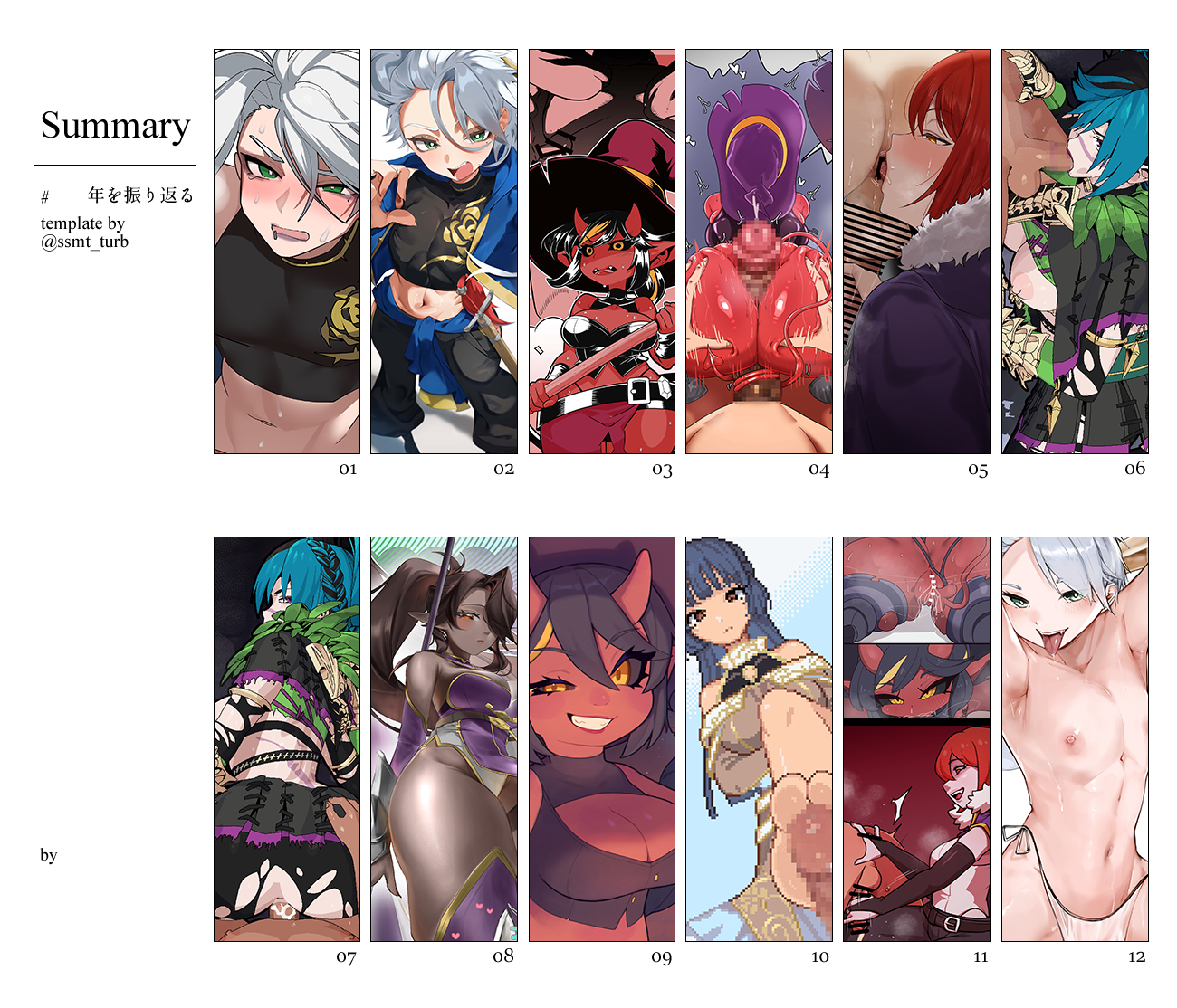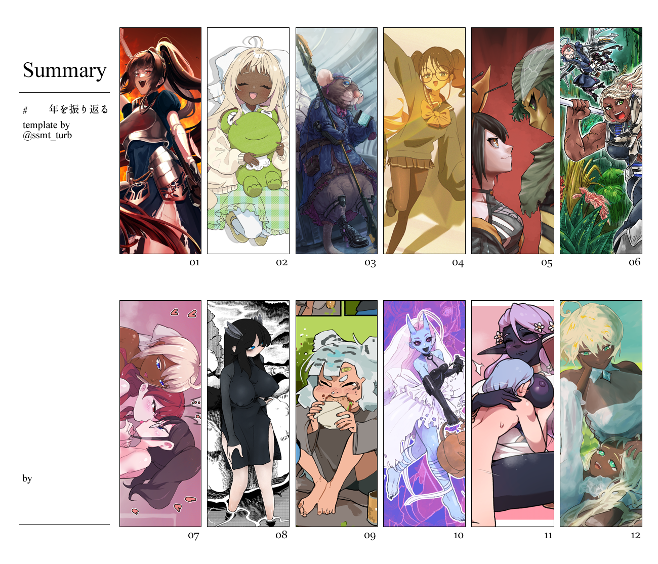 >>8805750Shortstack imp didn't make it on since my favorite two for her this year were outside skeb, also limited it to personal pieces and didn't include collabs otherwise some would have made it in for sure. Very good year overall though.