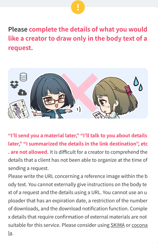 apparently an artist got suspended by skeb because they used the "ALT" function on twitter to write the price list or prices on their images