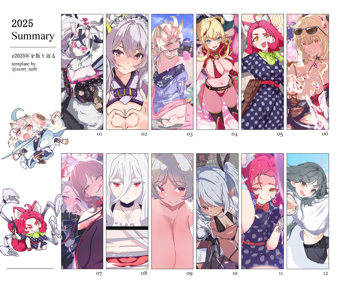 >>8805750Final one might change if an artist delivers my Goblin girl design in uhhh 3 hours. But it's outside skeb so I guess it doesn't count.June and November were tough. A lot of comms came in at once in those two months, or the artists were really quick, so I had a tough time deciding which I liked the most.