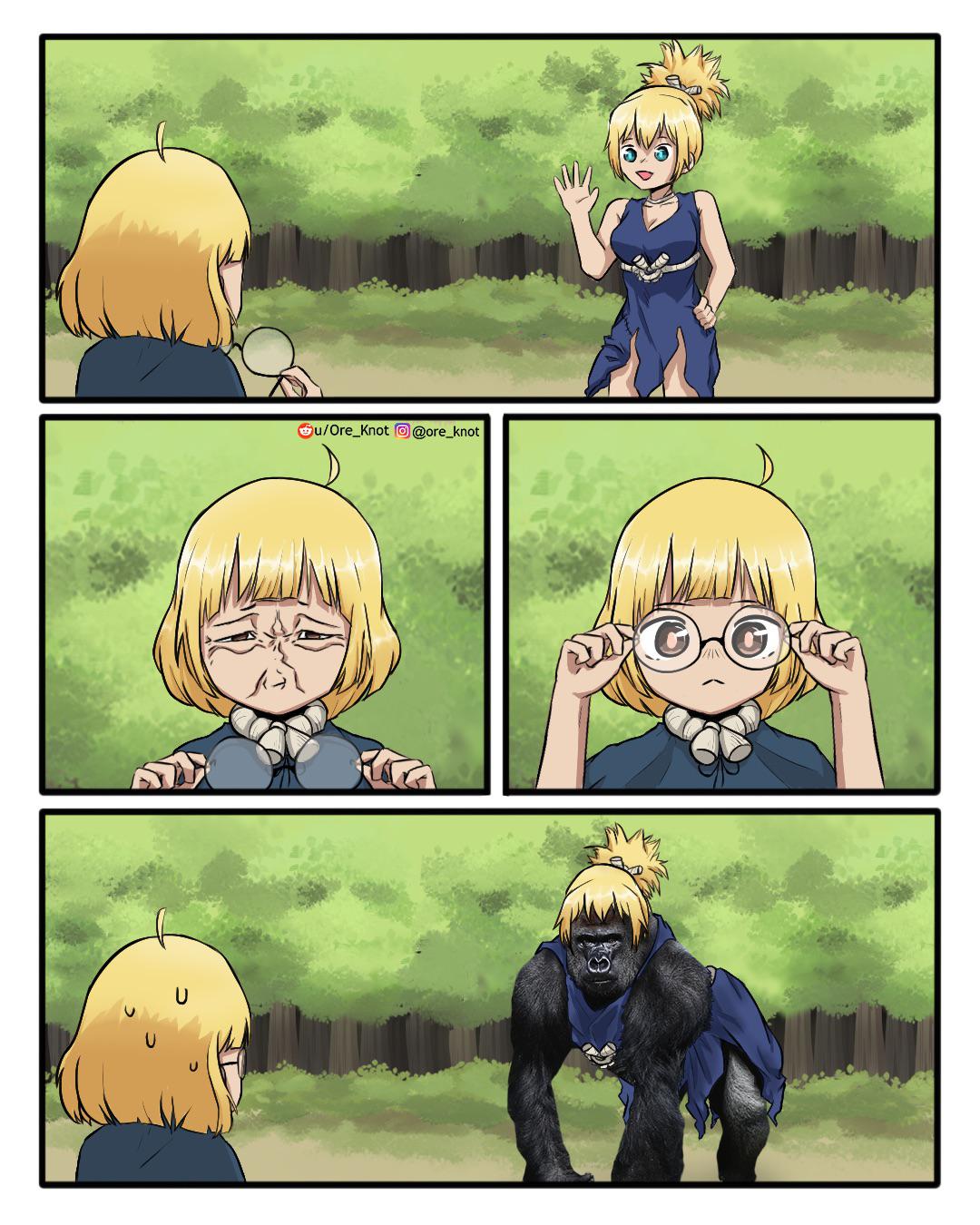 What the fuck happened to this guy?Like look at this. It's a simple back shot and yet the hair is just a straight up basic shape, flat colored, the shoulders are all kinds of weird, and the supposed "fat ass" is mishapen.NnT wasn't the best artist out there, I am well aware, but he wasn't THIS bad. It's one thing to see a good series degrade into a zombie kept alive out of fear.But it's also terrible to see the artist's technique degrade over time, too.