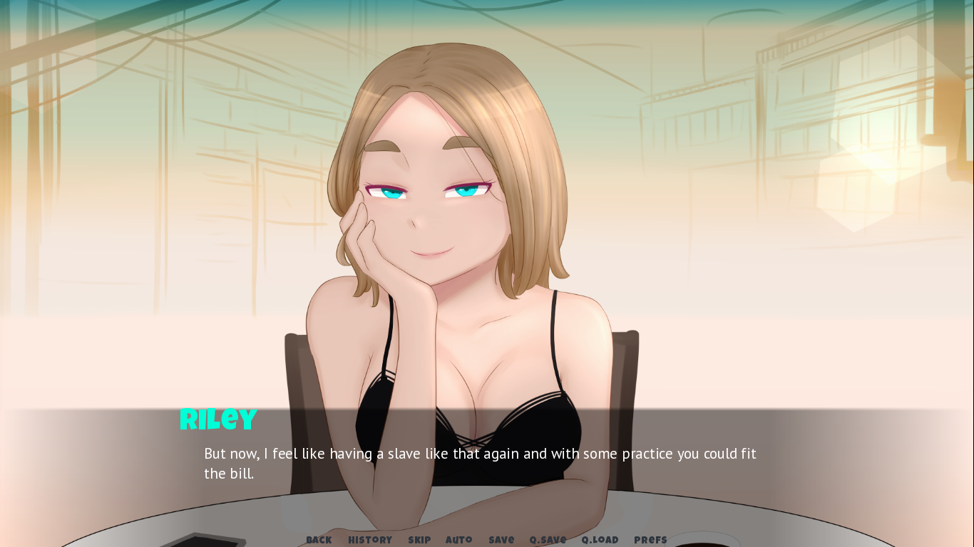 Most of the time it feels like you're unabashedly prostituting out your sister, often to literal scum from the slums. There is no specific well-developed "bull", Threenaw simply becomes the town bicycle engaging with basically anyone with a pulse. You have control over your sister's excitement, but without a clear antagonist possessing an independent lust level to be mindful of and protect her from, it's a shallow experience.Compare it to Nebel where Lawrence was a good-looking, suave and calculating playboy antagonist influenced by his own libido and frustration with the job. If not for him, his assertiveness, sweet-talking, persistence, skill in the bed, willingness to treat Kana as a woman and drag her onto "dates", she wouldn't have realized her femininity and warmed up to the idea of casual sex with him or others she fancied. It was a prolonged gradual pursuit that took effort and felt natural,where Kana's evolving relationship with Lawrence was just as impactful as with the player.Threenaw would fuck an ugly homeless bastard without much thought from the get-go, while Kana even in her biggest turboslut mode wouldn't engage with someone so far below her.
