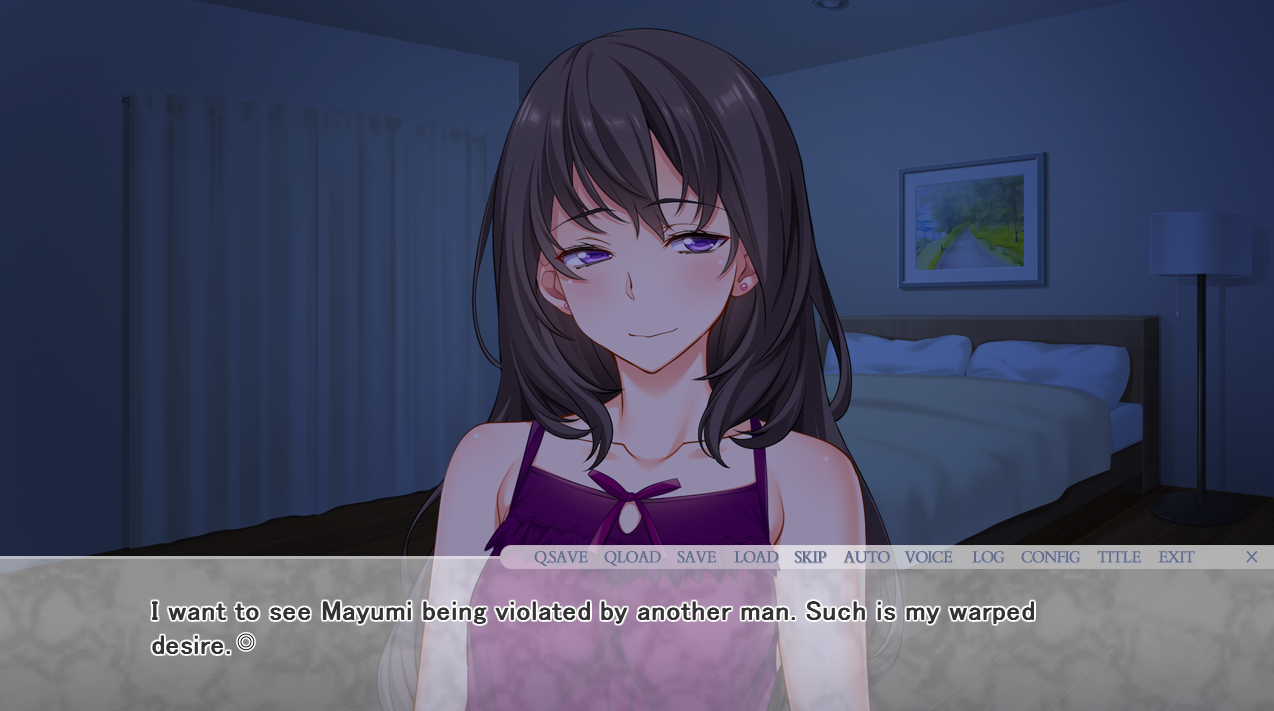 >>8843706Heroine of this game https://vndb.org/v10078 . It's not like i don't like her, but unlike Marina, Mariko's husband didn't started with begging her to do NTS.Mariko secretly having affair with her superior, and then she got questioned by her husband when she lying, and when she realize her husband was aroused by her cheating confession, she tease him until he was begging her to cheat on him. Mariko's personality to "weird' for me, in the sequel, when she fund her husband tired with their usual sex life, she jokingly said about doing scatology play . Even her husband was shocked with her sense of humor.
