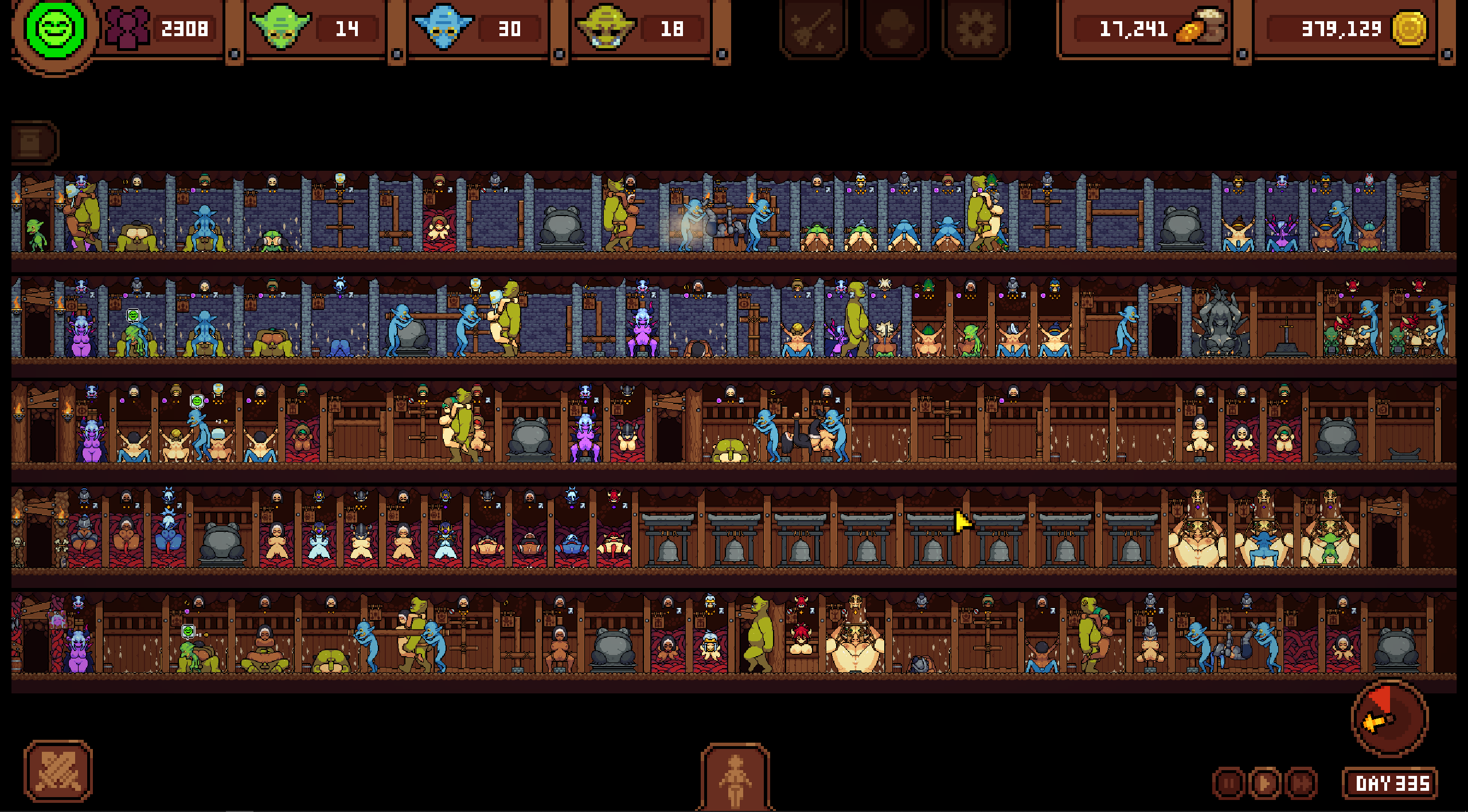 >>8852671The gameplay is more about quantity than quality, you breed more goblins to send them on raid to get more women to breed more goblinsThe only eugenic aspect is pumping enough goblins from high star prisoners to increase the stats of said goblin type, their special ability get buffed by feeding them milk of adequate quality otherwiseAutomation is a bit clunky since you need a big cell with a transfer room and 2 hobgoblins (blue guys born from Selene) to move prisoners around, it is very slow and limited in reach compared to MBM's fairiesOverall it can take about 8 hours or so to complete, maybe 4 if you know what you are doing on a second run