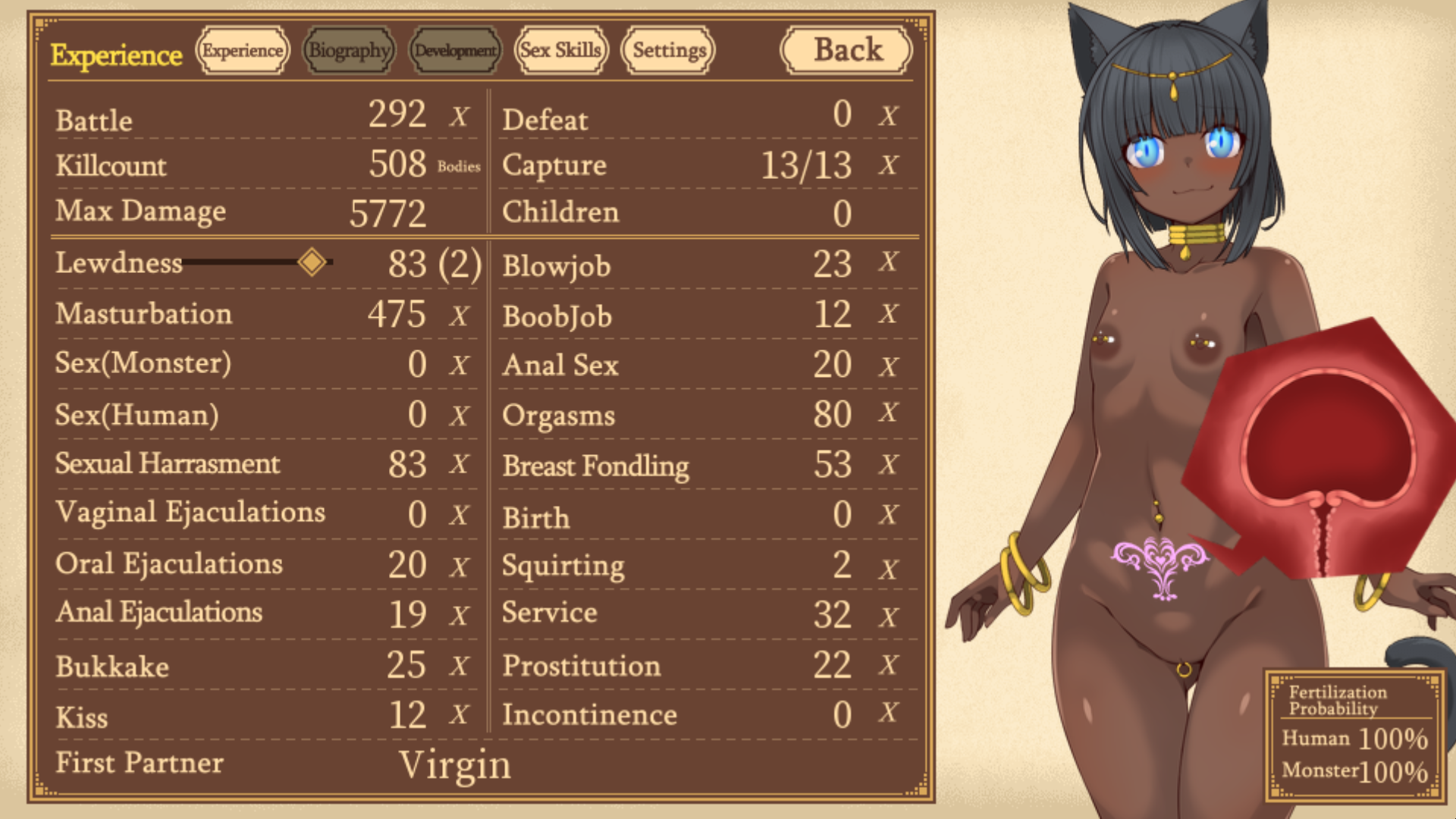 100% the game, good goon material. Could use some dlc so I can conquer more women and higher difficulty levels>>8856546You can let them have her since births can be recovered later. Her best usage is her infinite milk. Its basically a numbers game. Raid, breed, repeat.