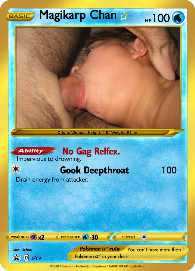>>2605414>Who is this? Newfag here, sorrySomewhat well known gook slut who was first leaked on /b/ 10+ years agoanons named her magikarp chan cause she looks like fish when trying to swallow bwc