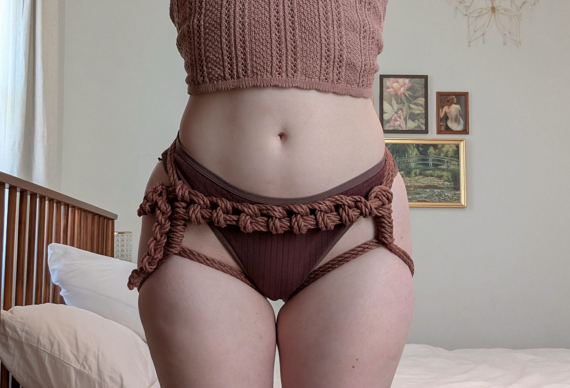 Okay, I guess I'll start by sharing one of my first experiences tying another person up.I met this girl via a munch that I found on FetLife. We got talking, got along. She's nerdy, autistic and a bit chubby, but very friendly. Jokingly said, hey, maybe you would let me tie you up sometime. She actually took me up on that offer and we agreed to meet up on the weekend at her place.I was super nervous and I didn't really know where to start, so I just did a very simple body harness. The one that goes from the neck around the crotch to the back, and then back around to make the diamond patterns.I also ended up doing a basic box tie similar to pic related.I ended up doing a couple of ties on her that day. Nothing else happened apart from that, but we met up quite a few times after that, mainly for bondage, but also for some S/M type things.