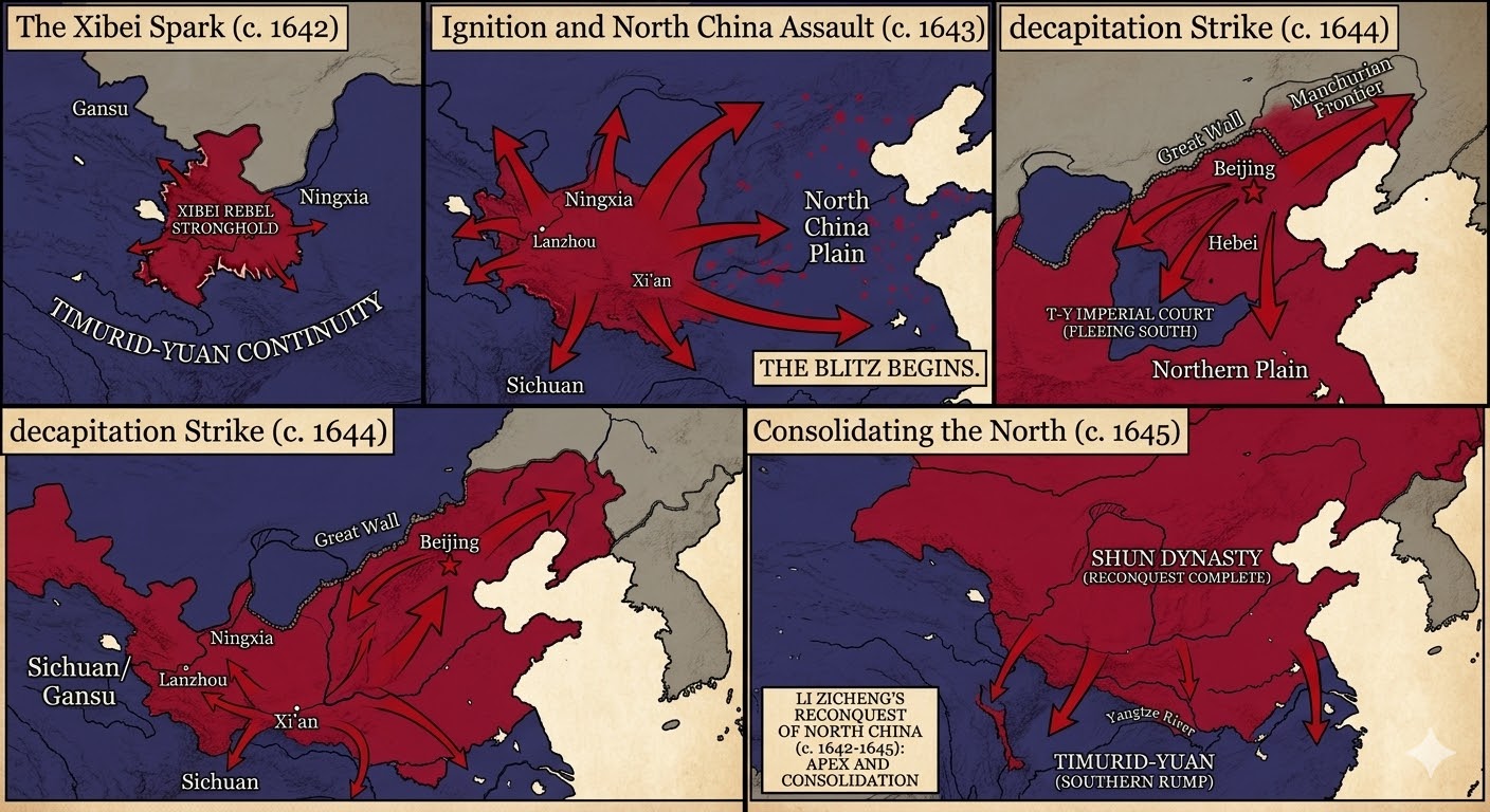 I wrote an alt history with Gemini where Timur didn't die on his way to China and successfully reestablished Yuan, but in the 1600s Li Zicheng arose as a holy warrior in the far north hellbent on reconquering China and he successfully took all of North China in his lifetime, the south and tibet was taken in a spam of 200-250 years in a very slow struggleThe last Yuan city was their capital Lhasa who fell to the combined forces of the Shun emperor, the Joseon king, and the Ashikaga shogunhttps://gemini.google.com/share/2d91dd3a8589