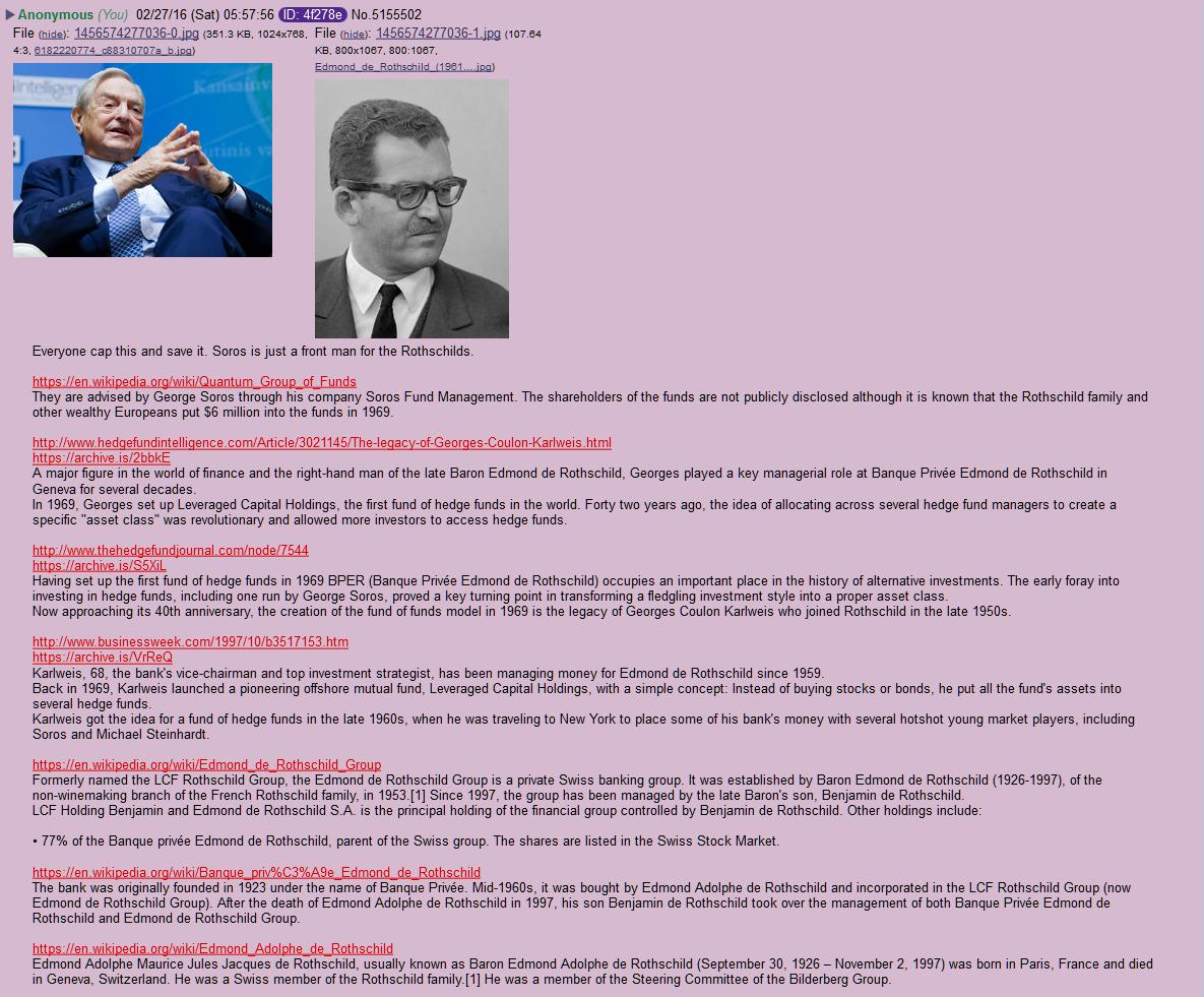 George Soros is literally just a front man for the Rothschild family.