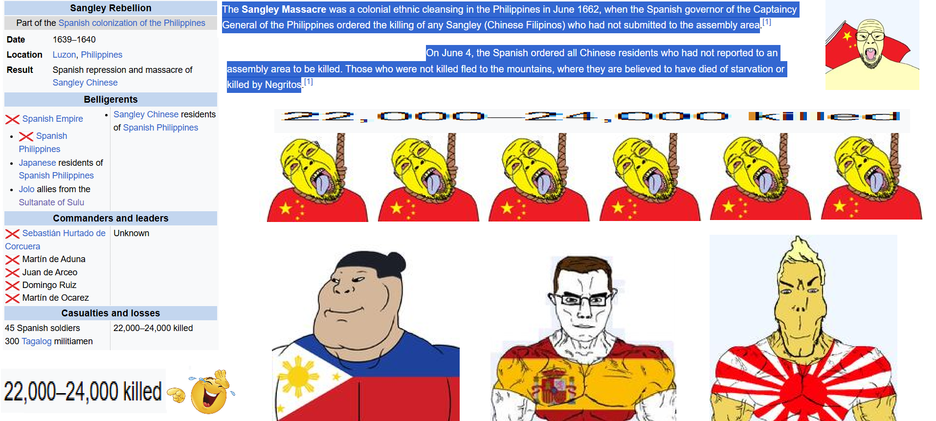 nobody tell him japs assisted in kicking spain out of asia and massacred hundreds of spics