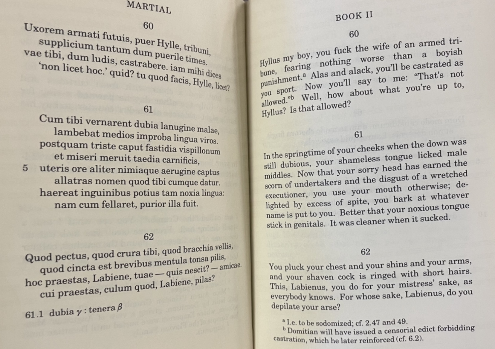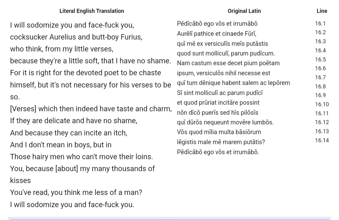 >>18063439>Show me the ancient Greek texts that use these words: παλακός, διγιντάγκας, κουνιστός, πισωγλέντηςI won't because I can't be bothered to, but the etymology is clear and even lines up with phrases they had for passive partners, especially in the word πισωγλέντης. Likewise arsenokoitai came from Paul so at the very least was in use during the Roman era. Your haughty coping over the slurs is funny though, I think you need to face ostracism filthy κίναιδος>No, the law he cites explicitly states that hubris against slaves is not okay under the law ...He then addresses the jurors concerns as to the nature of that statute by letting them know that the law doesn't really care about slaves but that provision is in there just to be sure that no harm comes to free-born children. It's like plain as day but I am sure you will pretend to fumble around what it means because it does not serve your argument. You certainly have earned your reputation.>A word that applies to passive, effeminate menin essence: a homosexual man, a dreaded cineadus, a deceptive κίναιδος, a pathetic faggot, a (You)