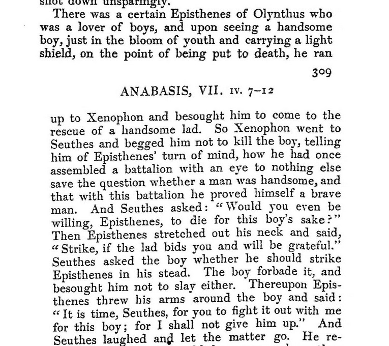 >>18061766>generally detested fags>>18061786This is not true either otherwise why the fuck would there be famous men described as having been eromenoi or why would Plato and Xenophon's dialogues depict homoerotic courting between free males