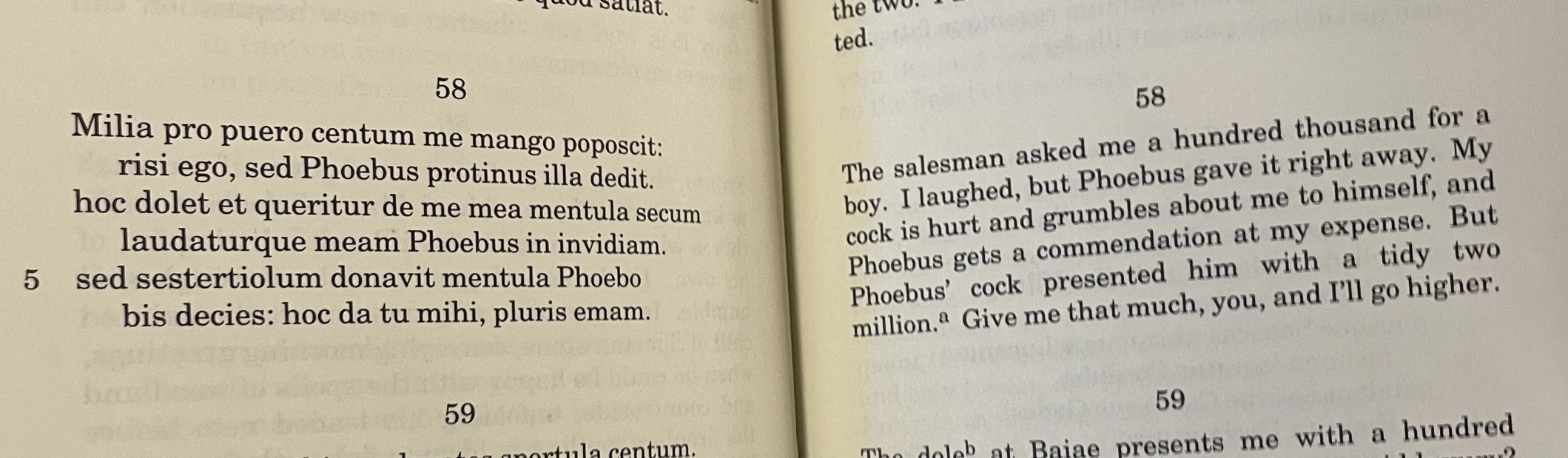 Hand-waiving the fact that he does not have evidence of an exchange of money for sexual services is important, because his prosecution relies on it:>[123] In contrast, the argument that Demosthenes is trying to persuade you to use is not the speech of a free man but of a prostitute who is quibbling about locations. But since you take refuge in the names of the lodgings and demand that the case be proved on the basis of the establishment where you plied your trade, once you have heard what I am about to say you will not use this argument if you have any sense. It is not buildings or lodgings that give their names to the occupants, but occupants who give the titles of their individual practices to their locations.>[124] Where a number of people have rented a single building divided among them, we call it an apartment building. Where one man lives, we call it a house. Surely if a doctor moves into one of the shops by the roadside, it is called a doctor’s surgery. If he moves out and a blacksmith moves into the same shop, it is called a smithy. If it is a fuller, it is called a laundry, if it is a carpenter, it is called a carpenter’s shop. If a pimp and prostitutes move in, it gets the name brothel from the trade itself. And so you have created a lot of brothels from your skill in the profession. So then, don’t ask where you ever engaged in the acts, but defend yourself on the ground that you have not done so.