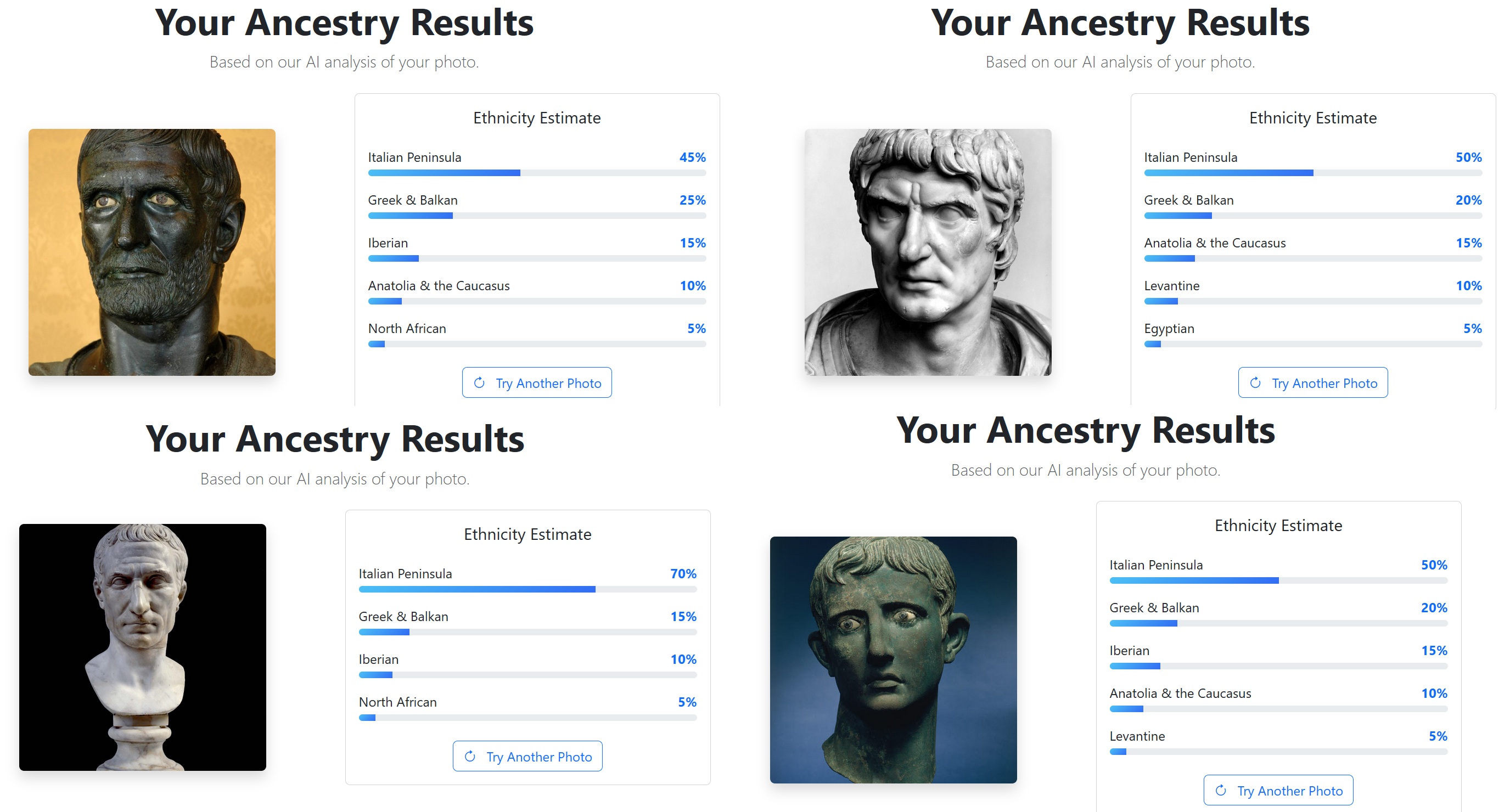 The actual statues of Romans/Greeks all get detected as Italian/Greek by AI. The exception is some shitty digital reconstructions which get detected as British/Nordic.