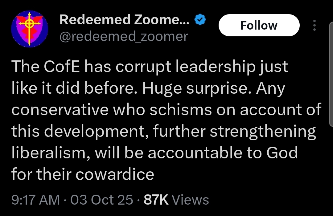He's been in full crash out mode after the announcement of the female "Archbishop".