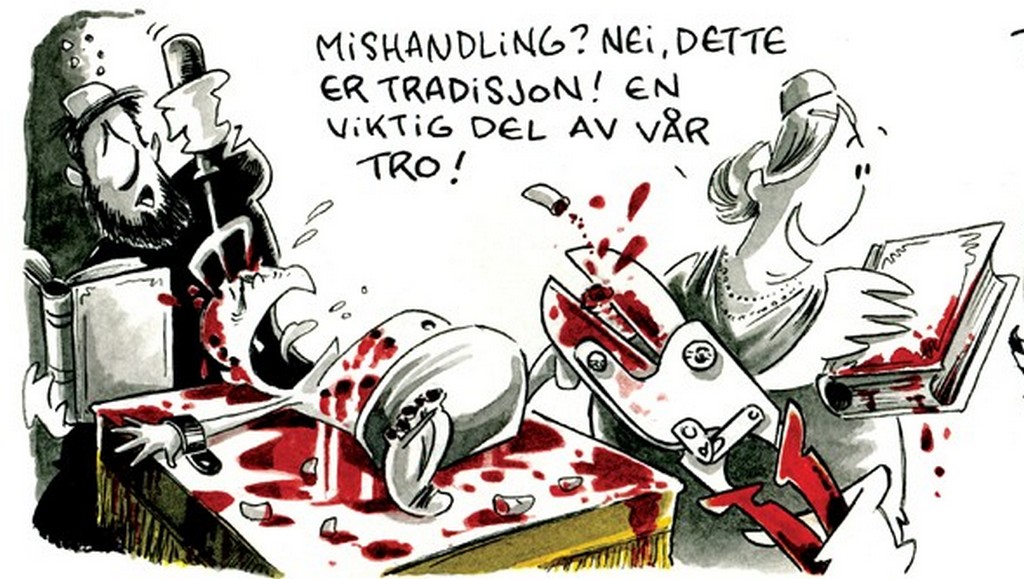 >>18083782Very doubtful they were factual events. Of course, 'blood libel' is an extant phenomenon and there are several cases where it was claimed. But when you examine them in context you can't conclude it was anything but a myth born from ignorance. Though I can believe the first case had some factual basis (I.E. A Jew did kill a Christian child) many others were just made up from whole cloth.>>18083795It's a Norwegian Newspaper cartoon against circumcision.