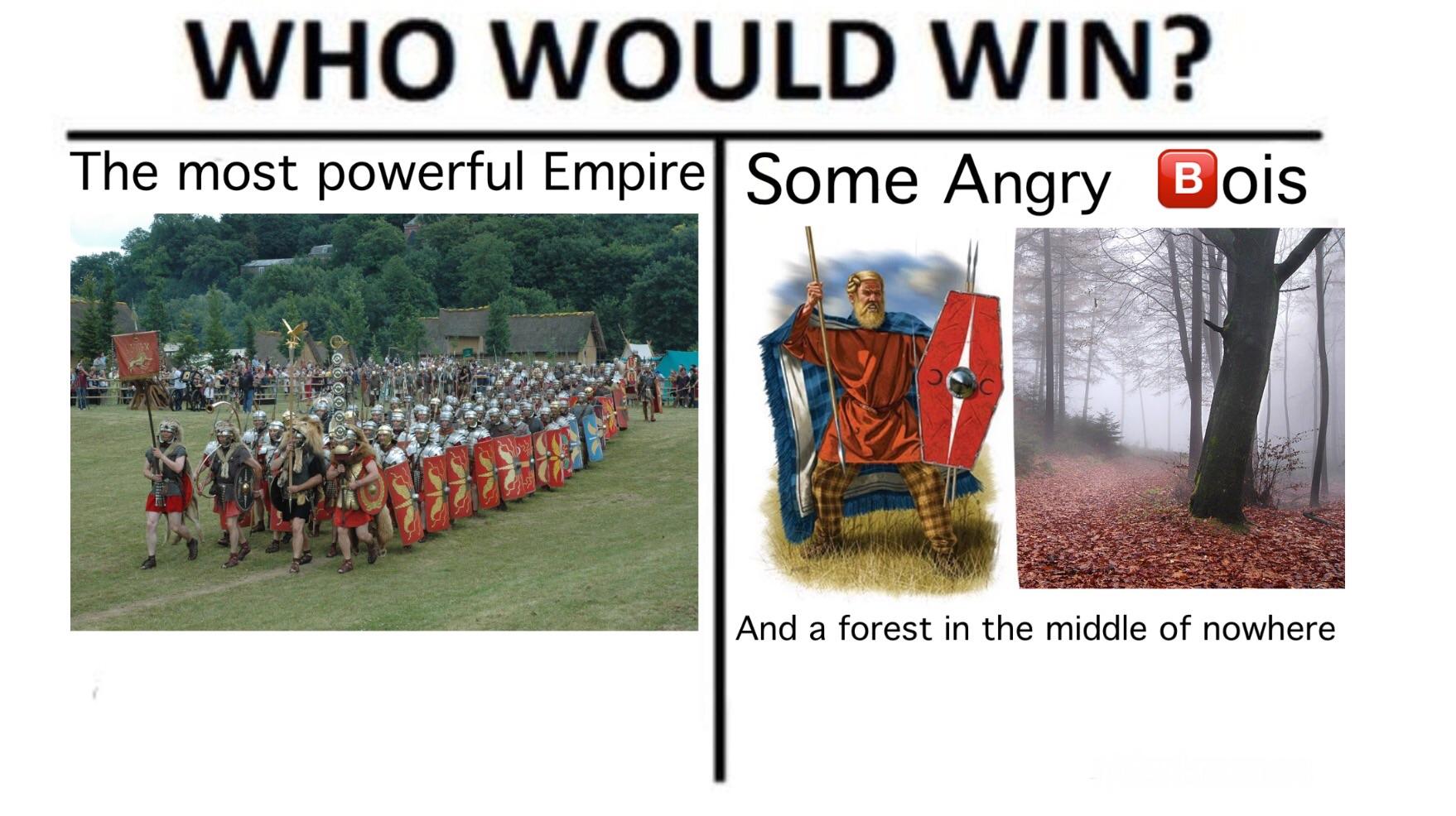 Germans back then weren't angry agitated peasants turned Berserkers like the Vikings. They adopted all of Rome's military technology. They adopted their army, their fighting style, they even depicted their Gods with Roman cavalry helmets. So really this was just Rome losing to itself, not to the Germans.