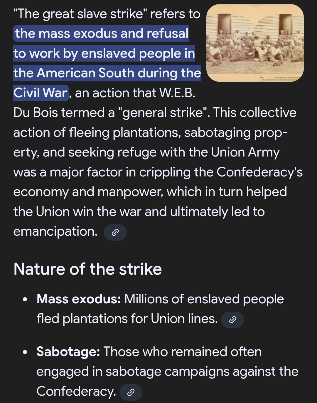 Please do not play dumb. Once the blacks learned that victory for the north meant their freedom, all manner of revolts and sabotage ensued.