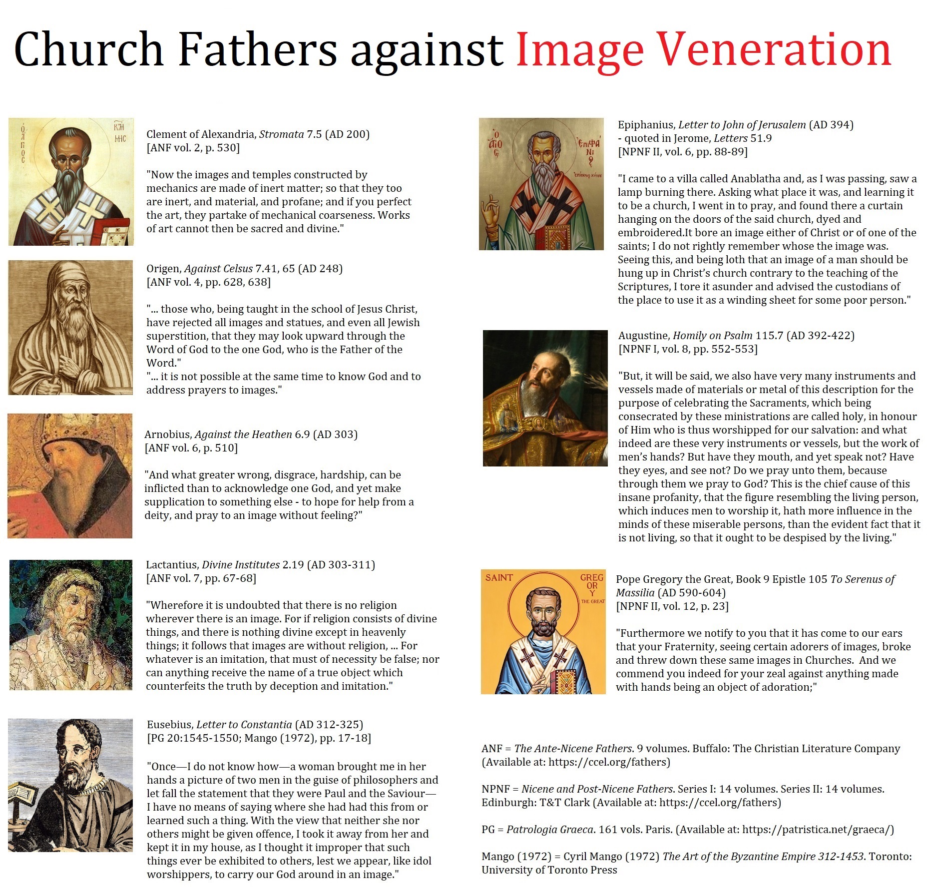 Ortlund has said patristic rejection of iconography was "unanimous". Unanimous is a very big word in church history, and very few things were truly unanimous, but I think I agree with this. There has not been a single word raised out of the entire authentic patristic corpus in favor of icons, and the most likely reason why is because no such word exists.