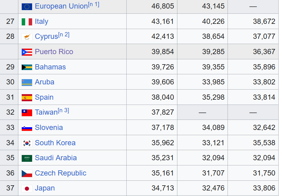 >>18116615Lol no.South Korea: GDP Per Capita - 33,121.37 USDJapan: GDP Per Capita - 32,475.89 USD