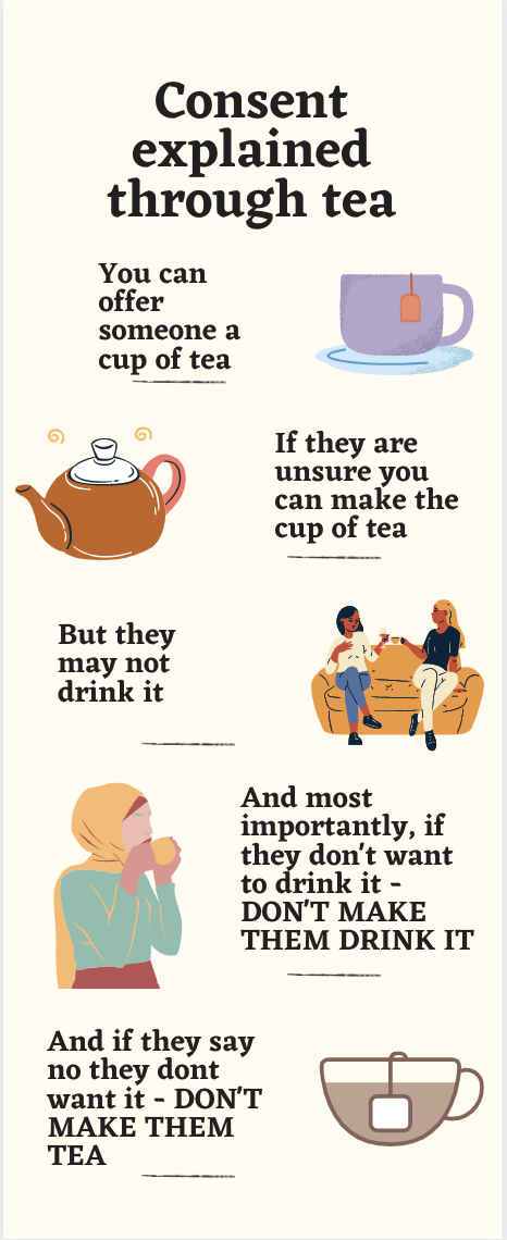 Beyond the fact that a person who made it has never been in a relationship with woman, if a person would refuse tea as they're drinking it sure they've drank some tea ok their own, and there's tea they didn't want inside of them, but they just put the teacup away and that's it.