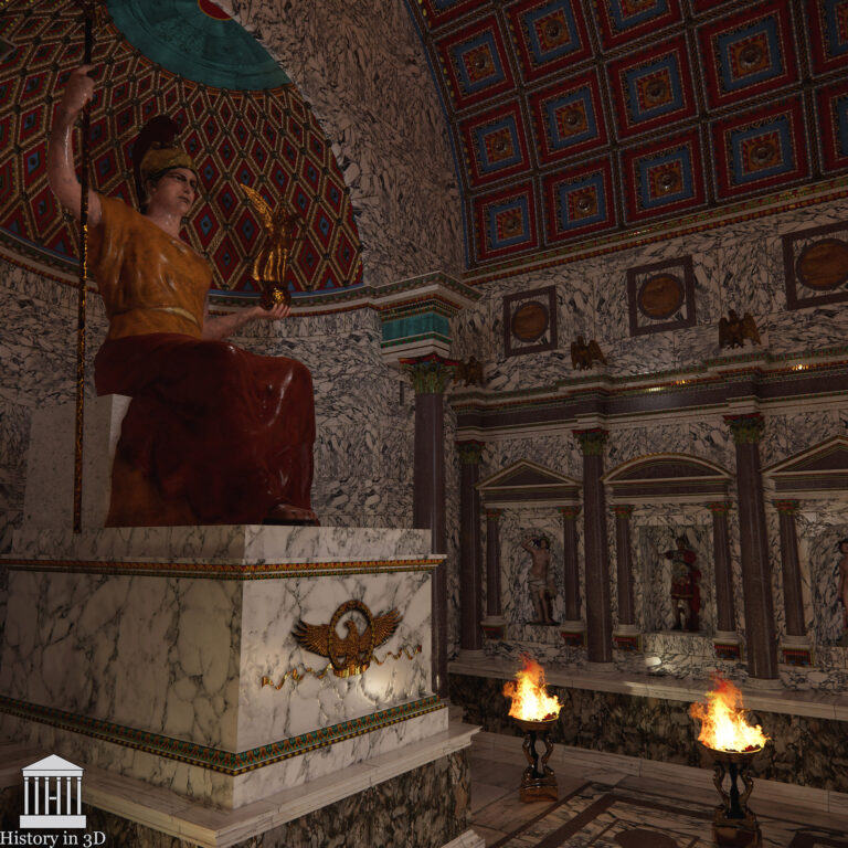 >>18126363>Roman temples and buildings were painted using a range of pigments derived from minerals, plants, and other natural sources, including reds from ochre and cinnabar, yellows from ochre, blues from Egyptian blue and azurite, greens from green earth or malachite, and blacks from carbon. White pigments like lime wash or lead white were also used, creating a colorful palette. Temples weren't just white, only retards think that.