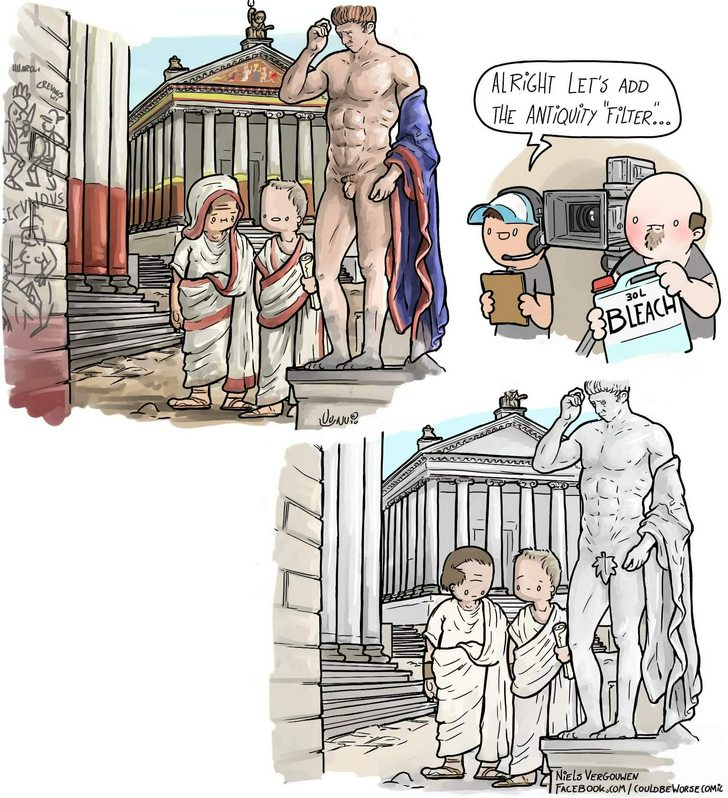 >>18131686The reason these recreations are so fuck ugly is that these retards can only pick up the lowest, base layer of paint, and assume thats the whole thing. Anyone who has painted sculptures can tell you you do it in layers, with the top layers having the most detail(and being quickest to degrade).>>18131473Dude stop derailing the thread you're giving us mesoautists a bad name, we have to put up with enough bullshit here already