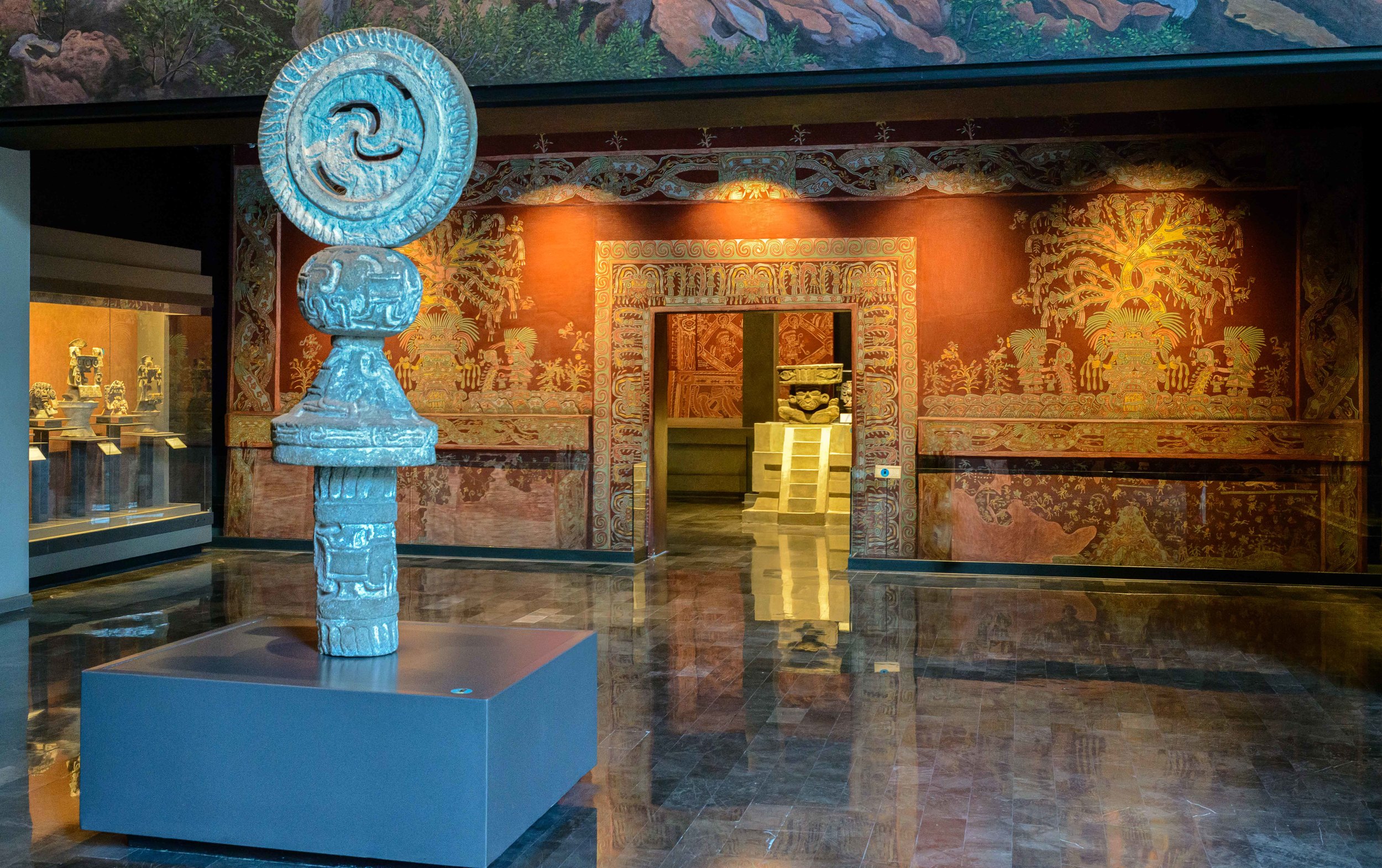 >>18131912By the time I started posting Mesoamerican stuff, other people had already posted painted Hindu temples, and someone already posted Mesoamerican and Andean realistic sculptures. It was already "derailed", and I'd argue it was never really a thread just about the Roman's painted art so much as historical art and architecture that was originally painted anywaysAnyways if you find it that disruptive, >>18131686 will have to tell me if they want more examples of revivalist or replica Mesoamerican stuff that has paint: I was going to post some replicas of Teotihuacano murals (and a pyramid facade) in the Museo Nacional de Antropologia and in some in on-site museums at TeotihuacanThe finish isn't as smooth as it would have been, it's still a little overly matte and not as glossy (and lacks the metallic flakes some mesoamerrican paints had mixed in), but it's not nearly as bad as your poor roman example there, or the painted replicas of aztec stuff the Museo del Templo Mayor has