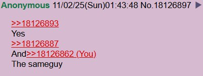 >>18126893Yes>>18126887And>>18126862The sameguy