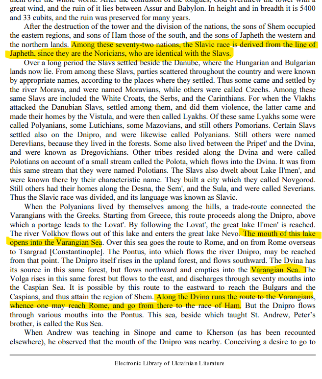 >>18176627>The primary chronicles is consistent on thisChronicle. Singular. The Rus Chronicle also calls the Baltic the "Varangian Sea" and was written too late to take into account much knowledge. It's mostly full of nonsensical Biblicisms.