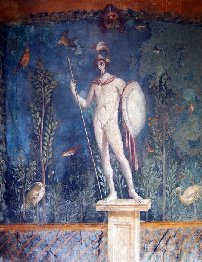 >>18241493>>18241495>>18241510>frescoesI think you're doing a lot of cheryypicking here, take a look at the collection on this site https://digitalmapsoftheancientworld.com/ancient-art/roman-art/roman-frescoes/and the larger one here:https://www.theoi.com/Galleries.htmlMost of the men are tan and swarthy, sometimes very much so, and have brown hair and eyes. Picrel is another depiction of the same god you posted here >>18241495 at the same place (Pompeii) around the same time.