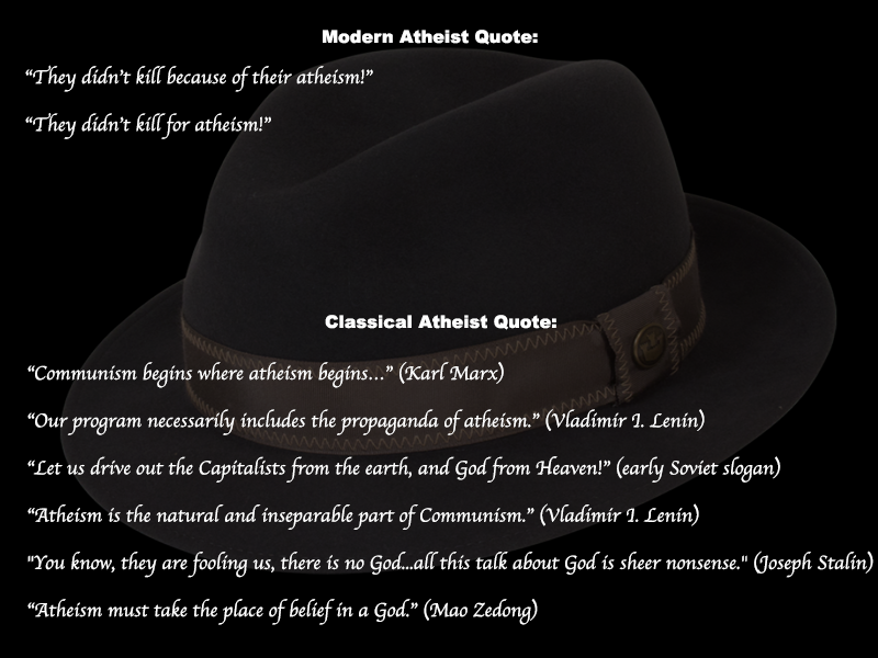 >>18251010Sad mental gymnastics. State atheism is atheists killing people. Plain and simple. An atheist killing a Christian for not being atheist is no different than a Christian killing an atheist for not being Christian. Well, they is one difference. The Christians belief system tells him specifically not to kill others. The atheist has no such guidance.