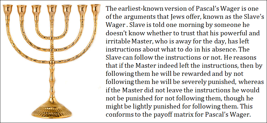 Pascal's wager origin. It's Jewish.