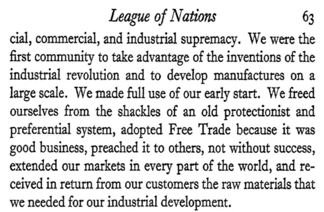 >>18283338Page 63. Zimmern admitting everything Henry Charles Carey, Friedrich List, Henry Clay or even today Ha-Joon Chang said was true. They built their industrial advantage through PROTECTION, then preach free trade to ALL OTHER NATIONS.