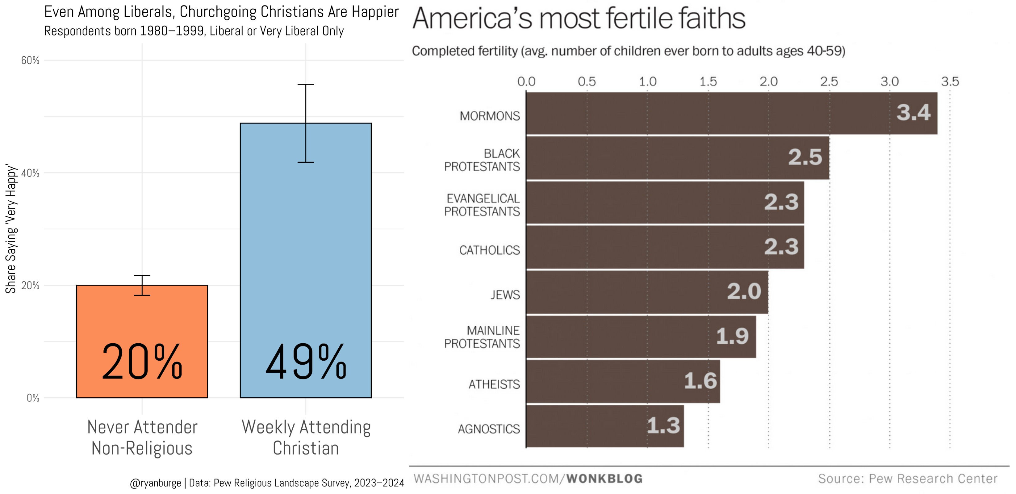 >>18290745>not surprising since religious people are statistically dumber.Here are some stats>atheists voted troon lovers Kamala 72%>atheists are the #1 group to support trans shit according to Pew research>atheists are the #1 group to take the vax at a rate of 90%